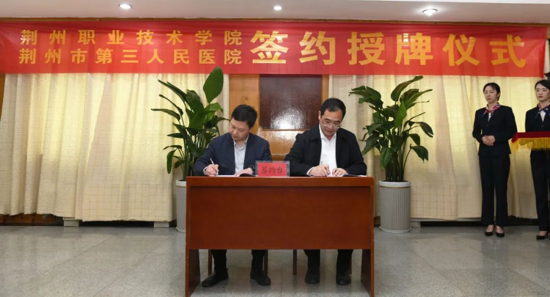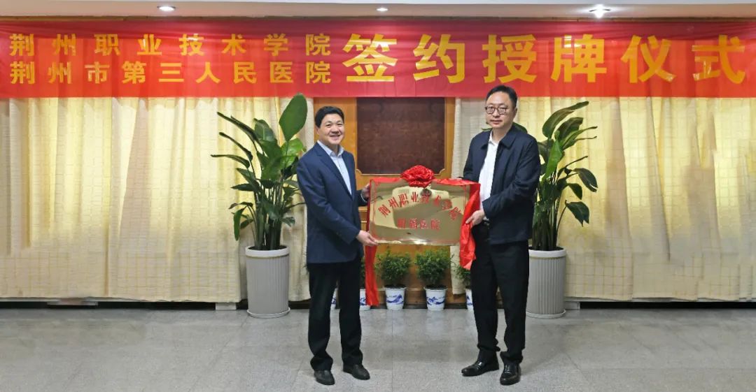 湖北日报客户端讯 4月11日上午,荆州职业技术学院与荆州市第三人民医院深化共建荆州职业技术学院附属医院签约授牌仪式在荆州市第三人民医院学术报告厅举行。