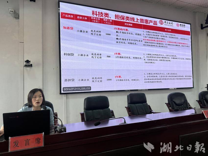 州市场监管局专利科负责人详细讲解知识产权质押融资贴息政策,中国银行、湖北银行、市信泰融资担保公司、市普惠资金管理公司分别向在场企业介绍质押融资产品、服务政策和办理流程。华芯科技(恩施)公司作为代表分享企业高价值知识产权保护和运用、专利质押融资的亮点经验。