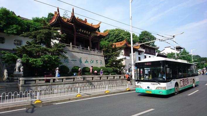 绿色环保的电车1路驶过黄鹤楼下六十六载