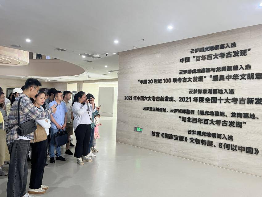 第一站学员走进云梦县祥山博物馆,通过多样的展览形式,如文物、图片、3D多媒体等,深入了解了云梦的历史文化。参观了《古泽云梦》《中国秦代简牍文物》《中国秦代漆木器精品》《云梦现代文明》四大展区,通过讲解员的详细介绍,了解了磨光彩陶、“中华第一长文觚”、彩绘门板画、虎头枕、人物画、扁壶等秦汉精品木器漆和东汉陶楼等各个时期的代表性文物。