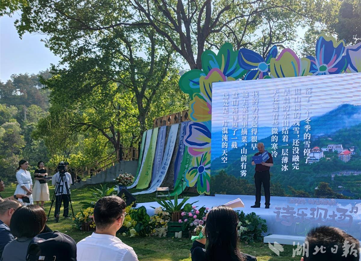 本次活动邀请了鲁迅文学奖得主田禾和诗人易飞为特邀诗人,华中师范大学文学院教授魏天无为特邀评论家,青年音乐人冯大亚和胡安什为特邀音乐人。活动在春意盎然的花乡茶谷户外舞台举行,借助怡人的自然景观,活动现场以诗、花、茶为概念包装元素,营造出一个闲适、诗意的春日空间,一首首深情感人的诗歌朗诵和美妙乐曲先后上演,回荡山水之间,现场一派诗意融融。