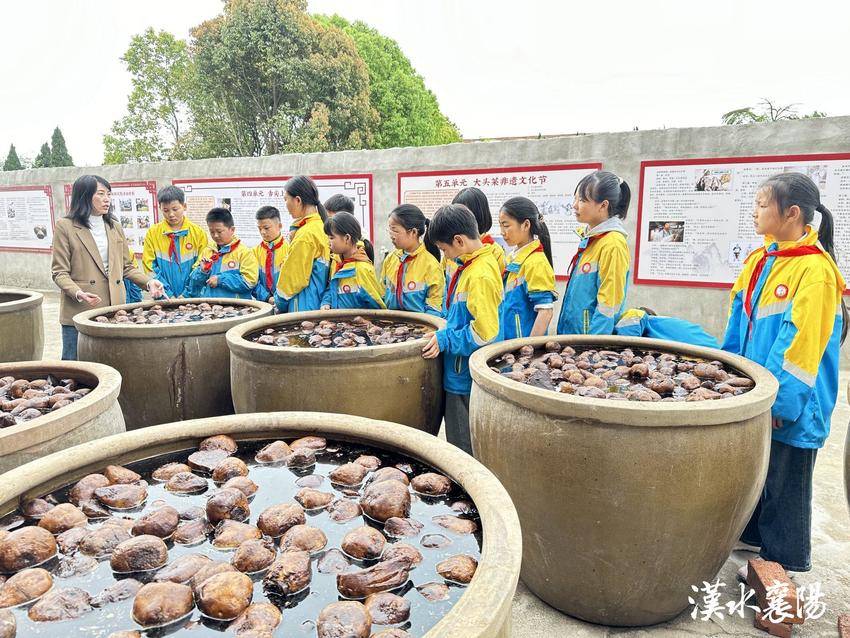 “三腌五卤六晒……”而在峪山镇原毕岗教学点,十几口腌有大头菜的大缸旁边,峪山中心小学五年级的学生们正在非遗老师的指导下,在该校的非遗实践基地上课——学习襄阳大头菜的腌制技艺。该校以“襄阳大头菜腌制工艺”为课程,从研、学、做的活动中落实综合实践课,并以此开发出校本课程,让学生从大头菜(孔明菜)名称的由来,到栽培种植、管理和收获,以及大头菜的腌制、加工等一系列的流程中去了解非物质文化的奥秘与珍贵,从而在实践增强学生劳动情感,促进学生全面发展,同时也提升学生的家国情怀。目前,在非遗传承人岳德智的全程指导下,大头菜的储存、腌制、制作流程已传授完毕,校本教材也已通过初审。接下来,该校还将继续打造大头菜种植基地和研学基地。