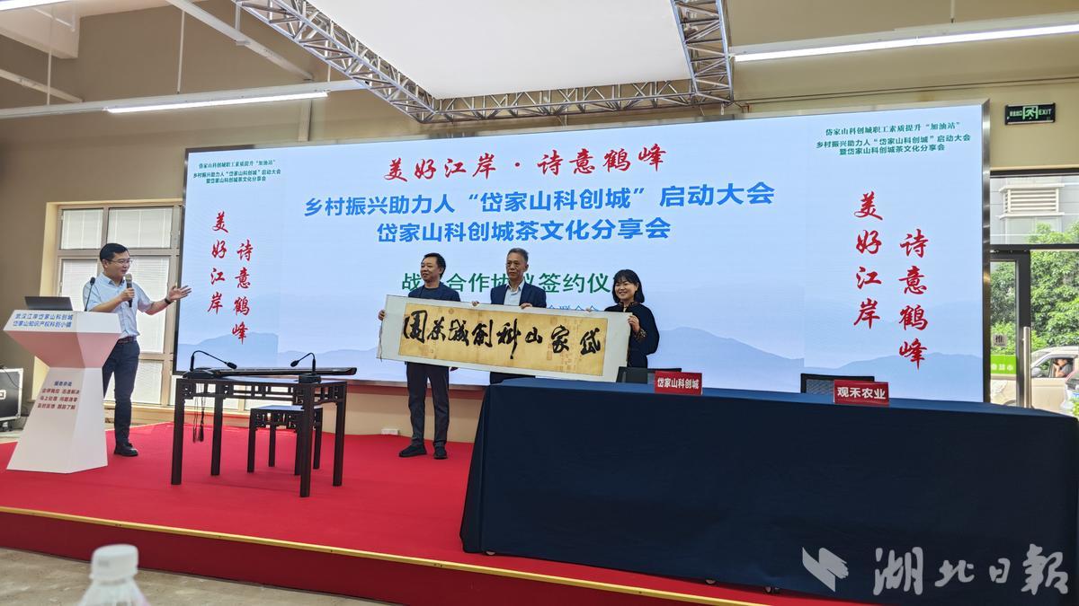 会议现场,岱家山科创城与鹤峰企业的双方代表签订共建茶园协议,确定对口帮扶基地,并发布《鹤隐山乡村振兴助力计划方案》。包括“岱家山科创城”落地系列帮扶举措,挂牌“岱家山科创城茶园”,设立爱心助农驿站,组织系列下乡进村助农活动,以组团式订单创新帮扶模式,落地“岱家山科创城”乡村振兴助力人团队组织,选址鹤峰下坪乡石堡村共建茶园,全面启动“乡村振兴助力人计划”。