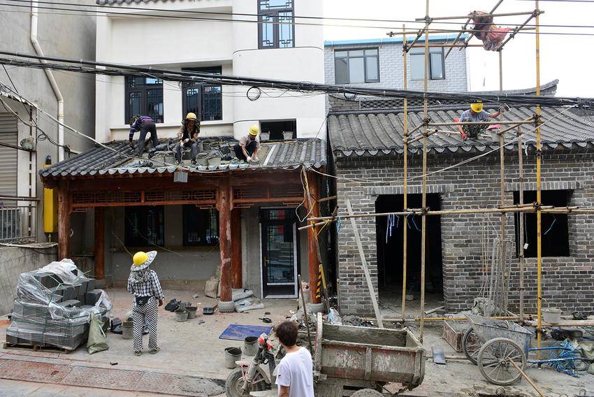 明清原有式样进行翻新改造。目前街巷青石板路面已铺设完毕,