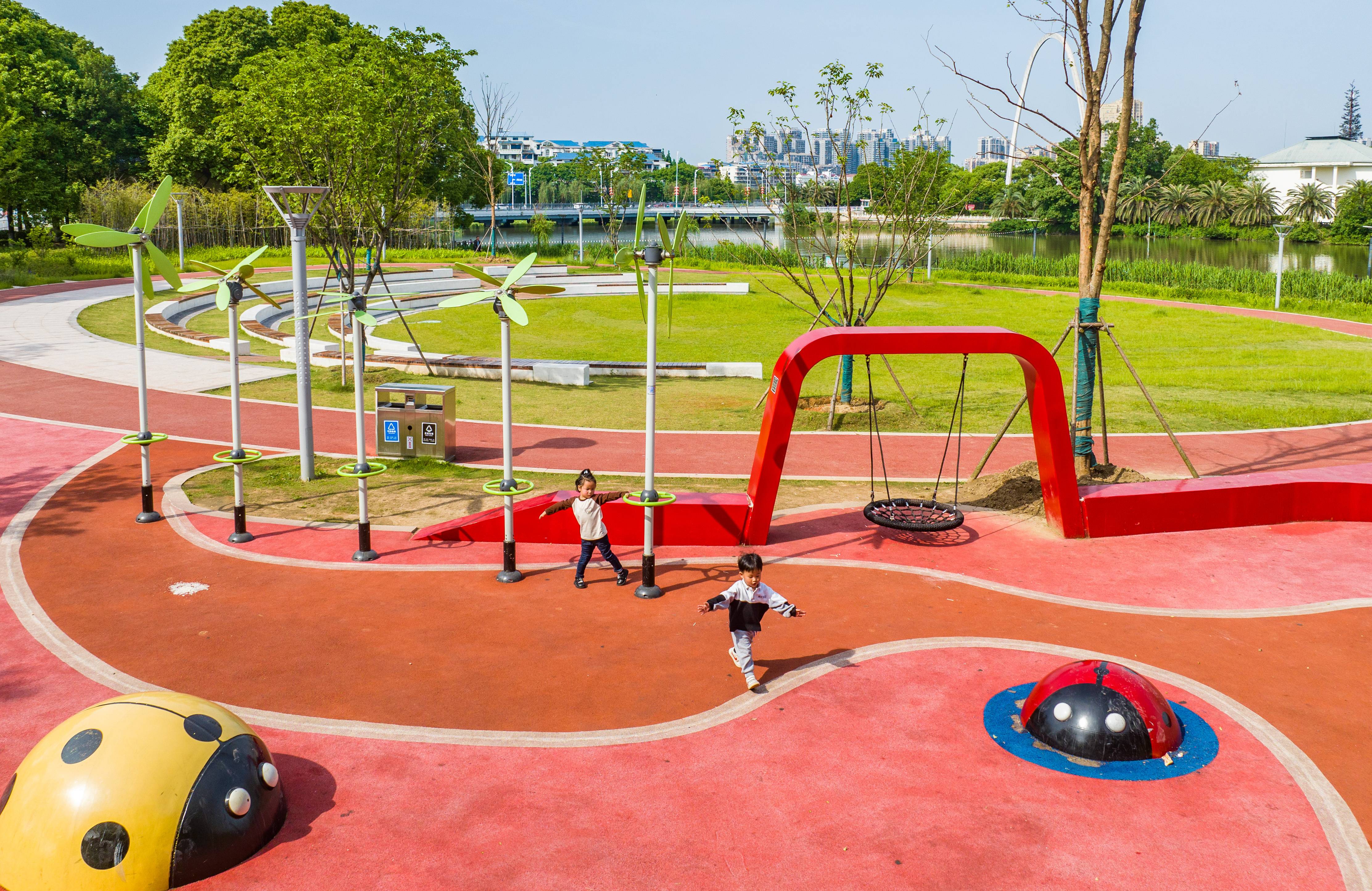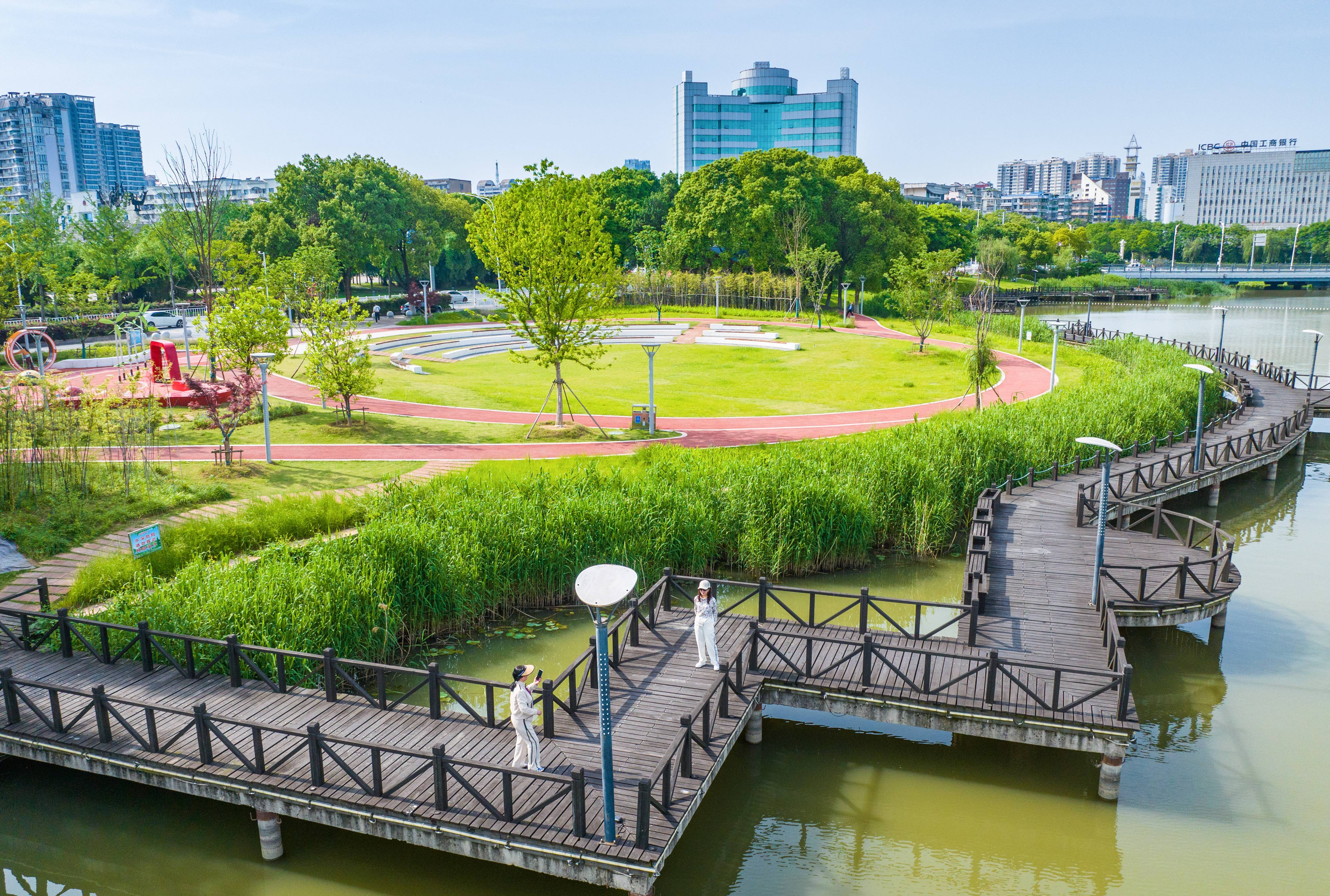 5月7日,新建成的鄂州洋澜湖口袋公园绿意盎然,吸引市民前来休闲游玩。鄂州将建设“口袋公园”纳入民生实事清单,目前主城区已建成66个口袋公园,新增绿地面积16万余平方米,焕新城市颜值,满足群众休闲、健身、娱乐需求。