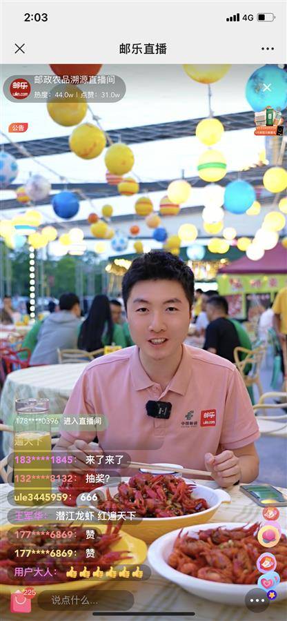 潜江是“中国小龙虾之乡”,为提升小龙虾项目农产品销售规模,打造邮政农产品全国级基地项目,潜江市邮政分公司在邮乐官方直播团队的指导和帮助下,于5月17日在潜江龙虾城万人龙虾宴活动现场,组织开展“潜江小龙虾”溯源直播活动。仅半个小时,直播间累计销售商品突破100万元。