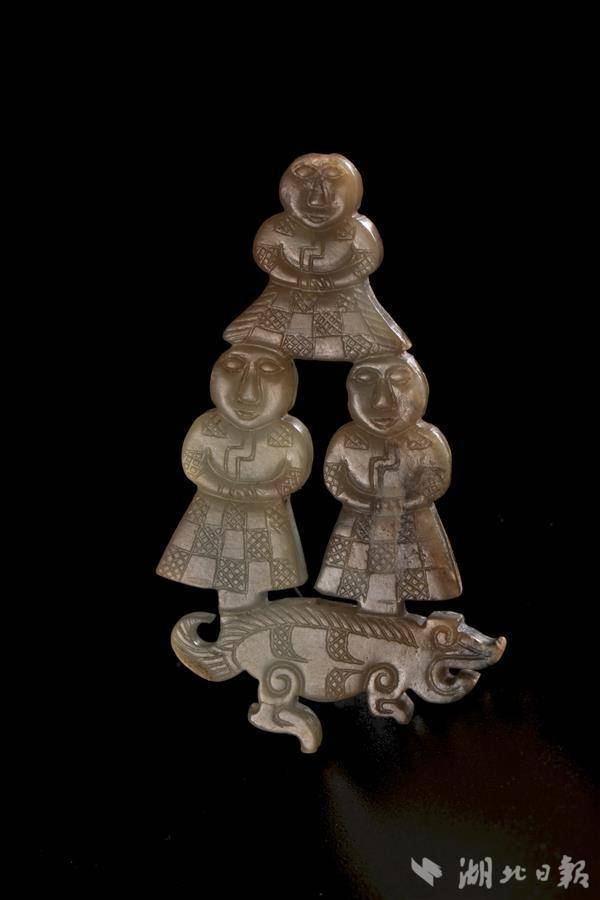 战国 三人踏豕玉饰 湖北省博物馆藏