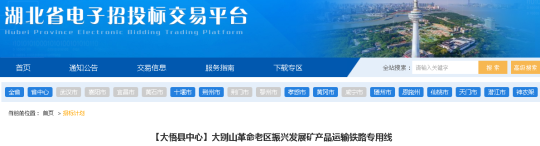 为持续深化一流营商环境,提高招投标活动透明度,着力提升服务企业、服务群众的服务效能,便于投标企业及时了解招投标项目信息,现将“大别山革命老区振兴发展矿产品运输铁路专用线”招标计划发布如下:1. 项目名称:大别山革命老区振兴发展矿产品运输铁路专用线5. 建设内容及规模:本项目拟规划位于湖北省随州市广水市和孝感市大悟县境内,项目呈西向东走向,起于京广铁路杨寨站北,折向东,依次上跨107国道、孝洪高速、麻竹高速、京港澳高速、澴河后、在京广高铁桥梁处下穿京广高铁,止于大悟绿色建材产业园,全长33.13公里。按设计速度80km/h 的铁路专用线标准建设,建设内容包括轨道、路基、桥涵、隧道、站场、接触网、通信、信号、房建及相关配套设施等。以上内容是该建设项目招标信息初步概况,为投标人提前了解项目信息提供参考,具体项目信息以项目招标公告及招标文件为准。 招标单位名称:大悟县交通运输局