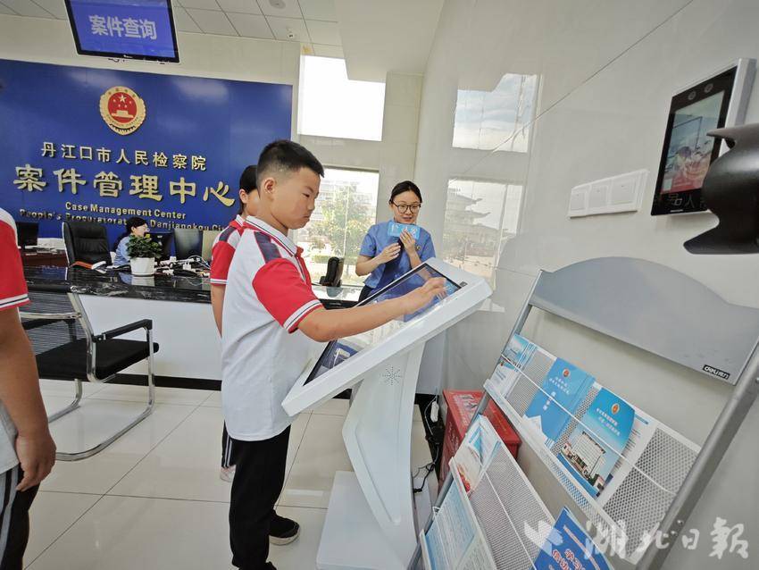 随后,来到案件管理中心和十堰市“两山”理论检察实践创新基地。同学们不仅了解了大厅外部的构成,还学会了怎么使用案件查询窗口触摸平台,更知道了检察院还能用最严格的制度、最严密的法治,保护我们的生态环境。
