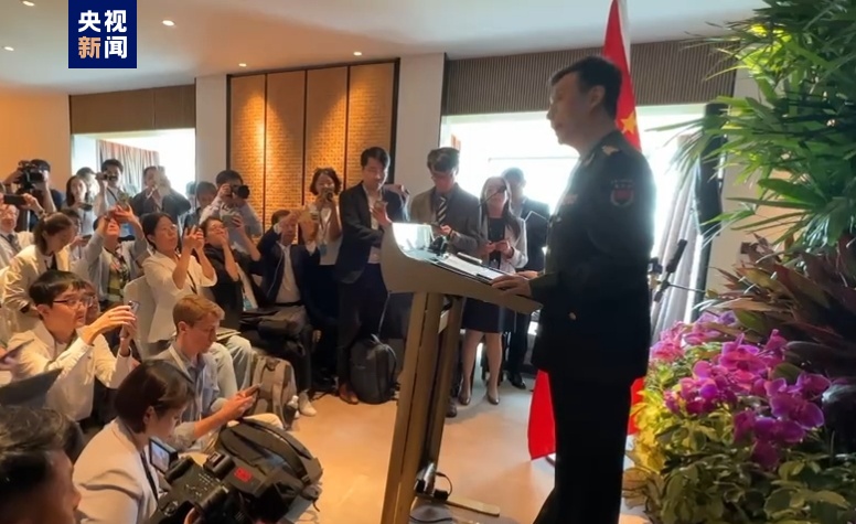 5月31日下午,中国国防部新闻发言人吴谦于香格里拉对话会期间在新加坡召开新闻发布会,介绍在对话会期间举行的中美防长会晤。