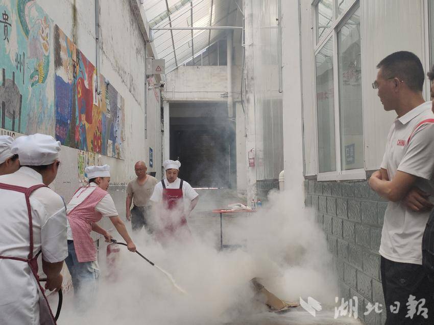 湖北日报客户端讯(通讯员邓素梅 )为了增强食堂员工的消防安全意识,提高应对火灾的应急处置能力,6月6日,建始县民族实验初级中学组织食堂人员开展消防演练活动。