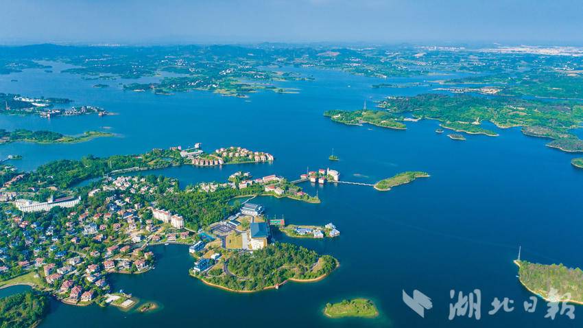 木兰湖旅游度假区是国家水利风景区,规划总面积50平方公里,其中水域面积20平方公里。度假区内有木兰湖、木兰花谷、湖北明清古建筑博物馆、湖北考古博物馆等特色景点,毗邻木兰山、木兰草原、木兰花乡等A级景区。(湖北日报全媒记者 任勇 摄)