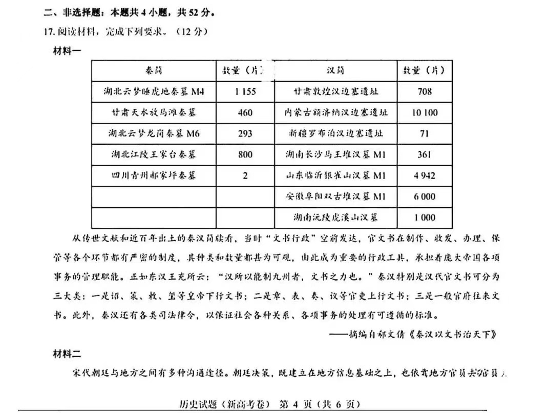 2024年湖北高考历史卷中就有这么一道跟湖北云梦睡虎地秦简相关的题目。材料给出了各秦墓、汉墓出土的简牍数量。材料显示,当时的王朝管理者们依靠这些简牍处理着庞大帝国的各项事务。通过丰富的出土简牍,研究学者们得以系统地研究秦汉王朝发达的“文书行政”体系。
