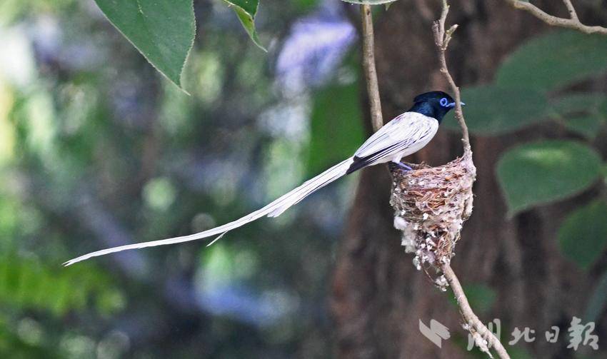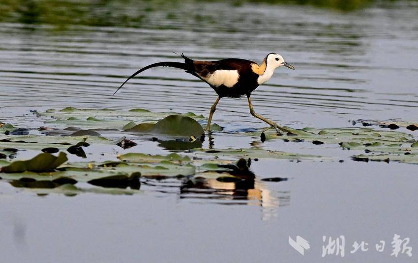 6月13日,枝江市仙女镇仙女村一湖边,当地爱鸟志愿者在搭建的隐蔽掩体内拍摄湖边的鸟儿筑巢繁殖的情形。湖边树丛中,发现有绶带、灰卷尾、翠鸟以及水雉等珍稀鸟类的巢穴。近年来,枝江市高度重视湿地保护工作,通过实施生态修复等工程,生态环境持续向好,生物多样性和种群资源也得到了明显提高,观测到鸟类184种,其中国家二级重点保护野生鸟类21种,还有中华秋沙鸭、青头潜鸭等极度濒危珍稀鸟类行迹。如今枝江已成为长江中游地区重要的候鸟驿站、鸟类天堂。