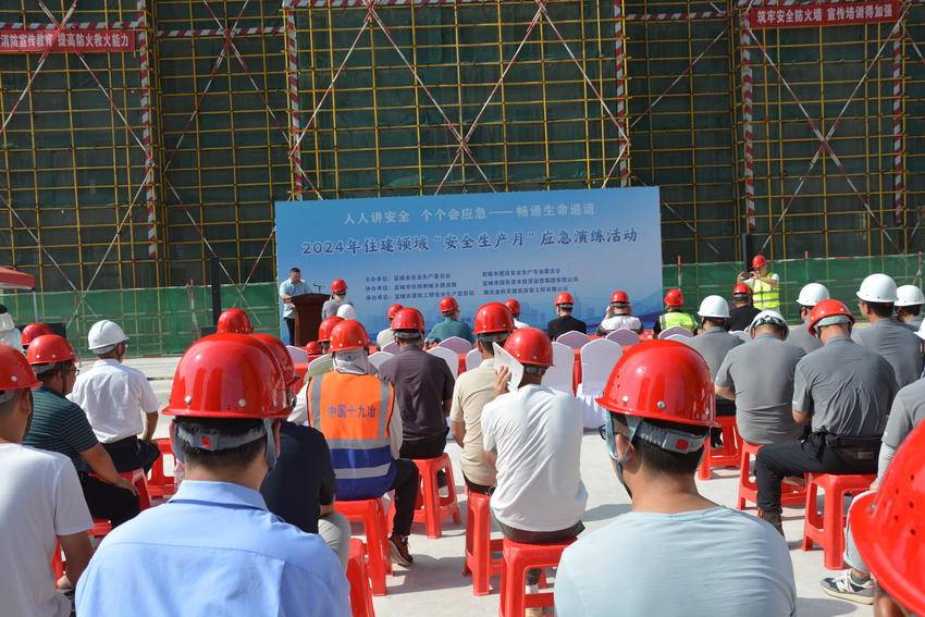 6月14日上午9时,一阵急促的电话求救声拉开了宜城市2024年住建领域“安全生产月”应急演练活动的序幕。