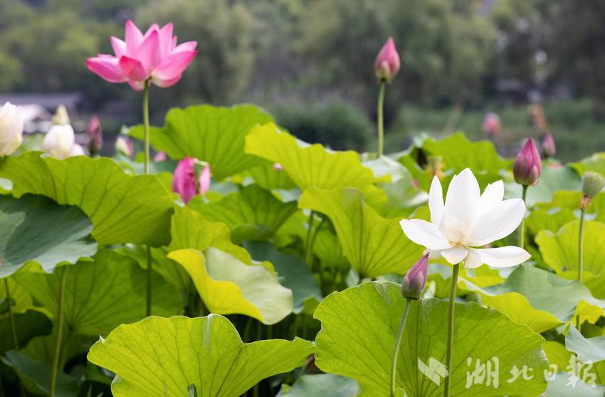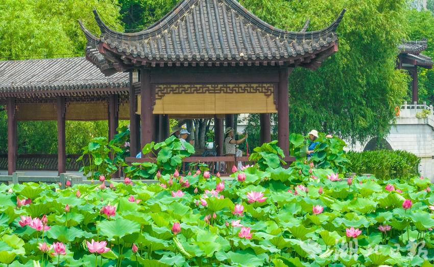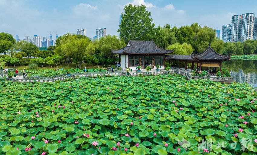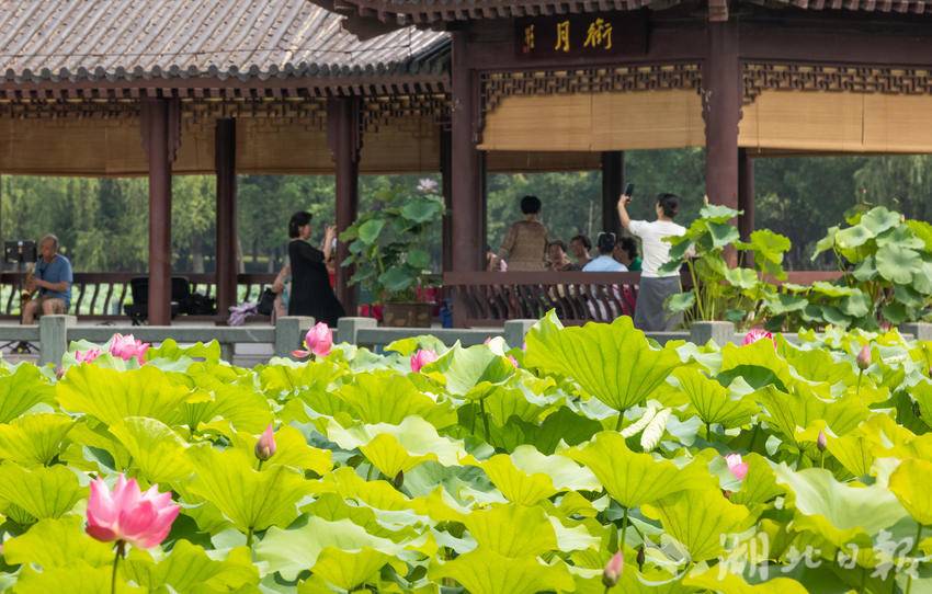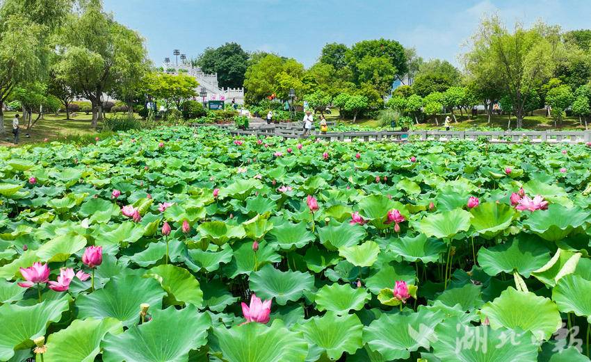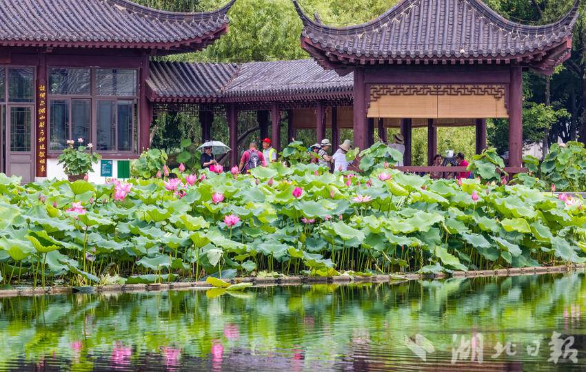 6月14日,武汉沙湖公园第十届荷花展开展,吸引市民游客游玩打卡。荷花是沙湖公园的“园花”。本届荷花展的主题为“花漾武汉荷美沙湖”,500余种、3000余盆精品荷闪亮登场。(湖北日报全媒记者 薛婷 实习生 曾清荷 摄)