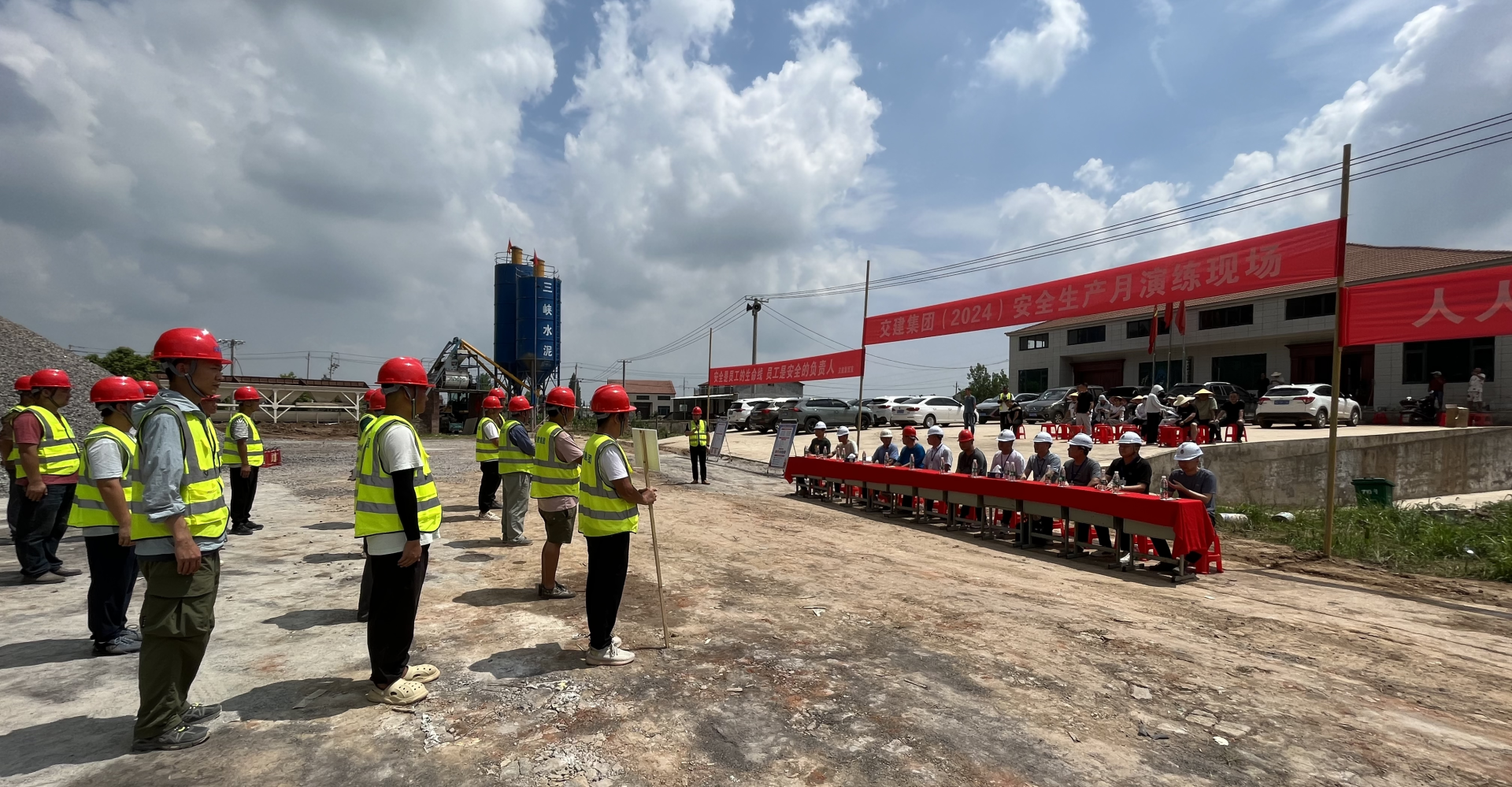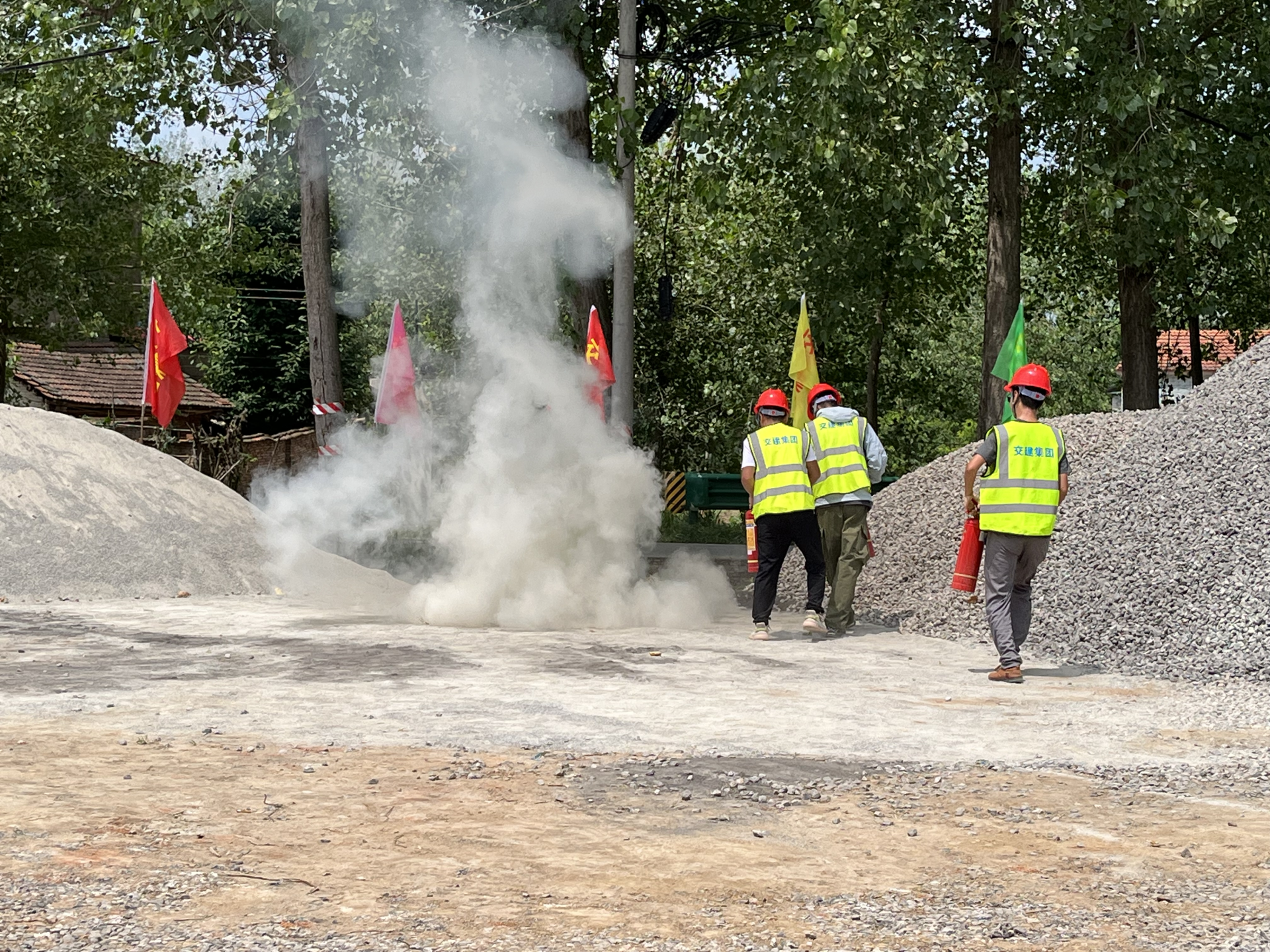 本次演练分为模拟工地易燃品起火和触电急救二个演练科目。上午11点,参加演练全体人员就位,现场总指挥介绍演习方案后,演练正式开始。不远处工地安全员发现火情,立即电话报告项目经理,同时启动消防应急预案,关闭电源、疏散人员、几名施工员迅速拿起灭火器灭火等各项工作同步进行,火情迅速被扑灭。紧接着工作人员发现工地上有人触电,迅速切断电源,拨打120急救电话,并向项目经理汇报情况。同时立即进行人工呼吸和心肺复苏等急救措施。几分钟后,医疗救护车赶到了现场。整个演练过程指挥果断、反应迅速、配合密切、处置有序,提高了施工工地操作人员和管理人员的应急处置能力,真正做到“人人懂安全,个个会应急”。