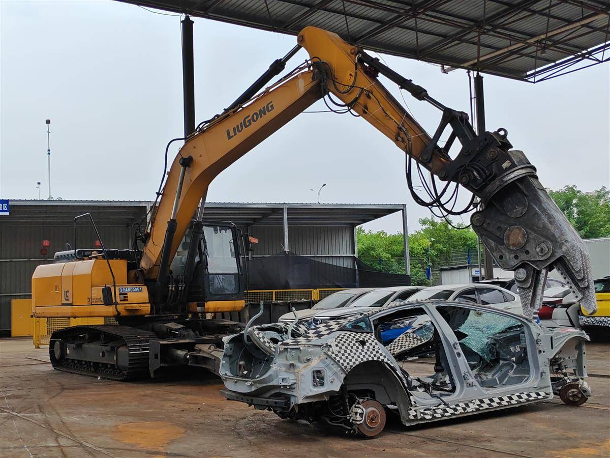 在拆解区域,湖北日报全媒记者看到,一辆大型拆解机挥舞着大手臂,正在拆解一辆报废的机动车,“哐当当”几下,车身变成一堆废钢。