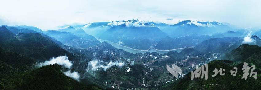 湖北日报客户端讯(通讯员 梁勇 陈功龙)5月17日,雨过初晴,长江巫峡巴东段云雾升腾,群峰突兀,若隐若现,峡谷幽深,山峦叠嶂,一条条如玉似带公路将大小村庄串连,美得让人窒息。