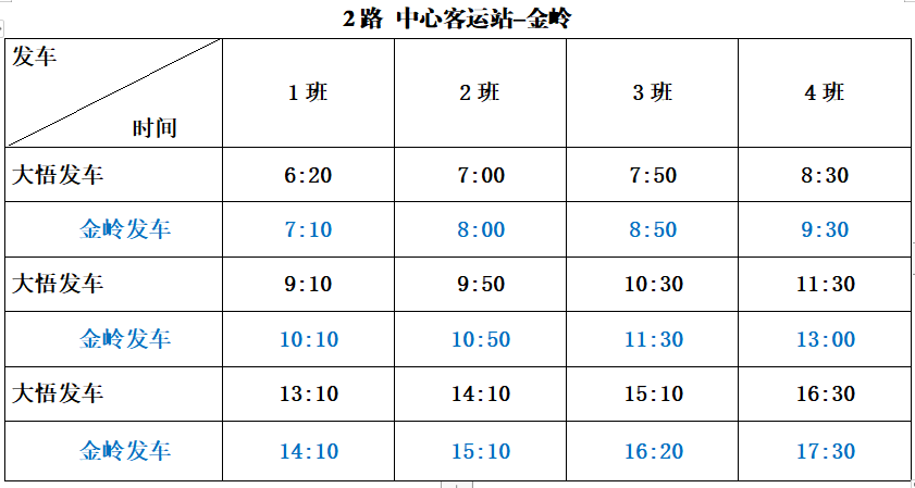 2路 中心客运站—金岭(本路线车辆往返站点相同)