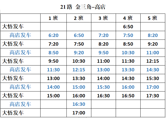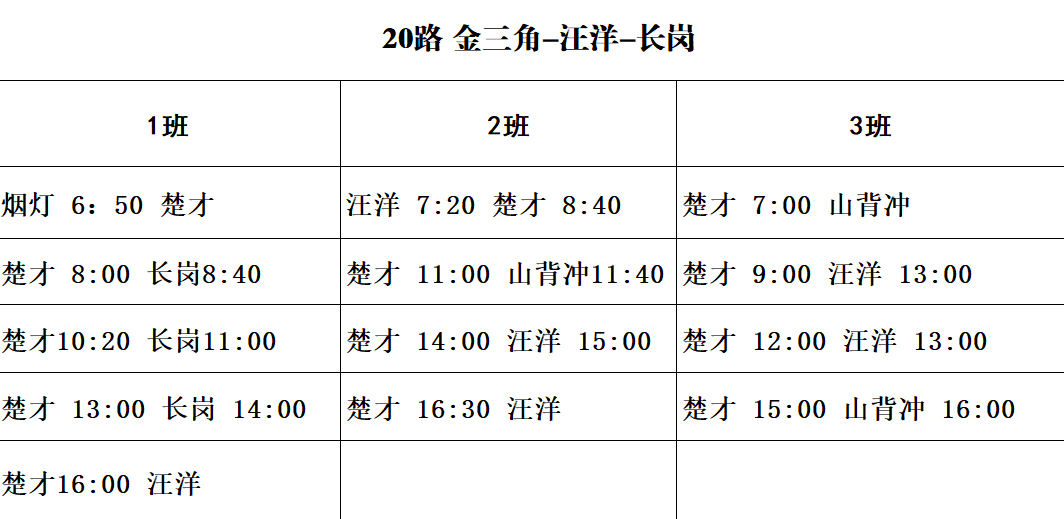 20路 金三角—汪洋—长岗(本路线车辆往返站点相同)