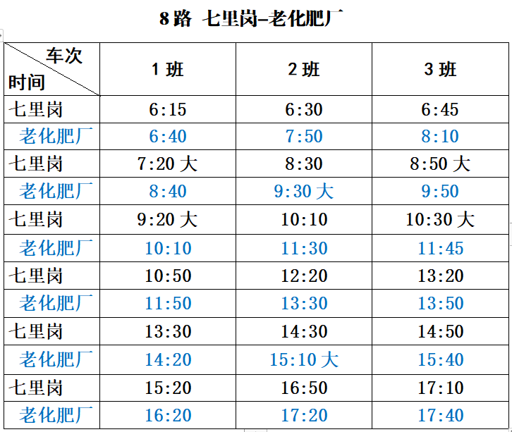 8路 七里岗—老化肥厂(本路线车辆往返站点相同)