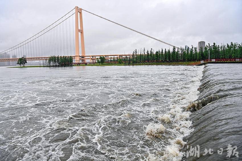 6月28日,武汉持续降雨,杨泗港大桥南岸的江南泵站12台水泵火力全开,带动滚滚水流汇入长江。