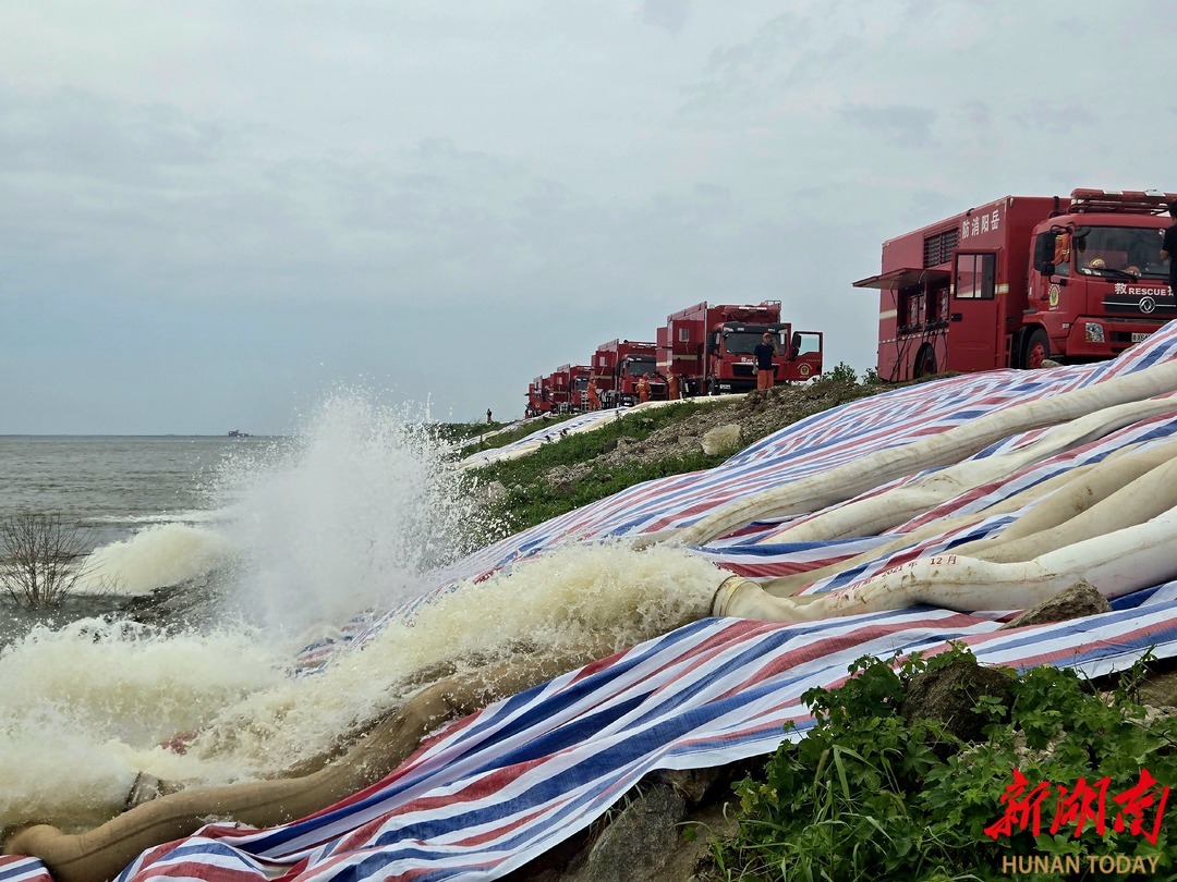8时许,娄底、常德消防排涝专业编队共出动4台排涝车、6台排涝拖车火速挺进团洲垸洞庭湖一线堤坝,抢抓时间抽排积水,全力排涝抢险,两支队排涝专业编队每小时最大排水量约23600立方,截至17时,累计排水188000立方,排涝作业仍在进行之中。