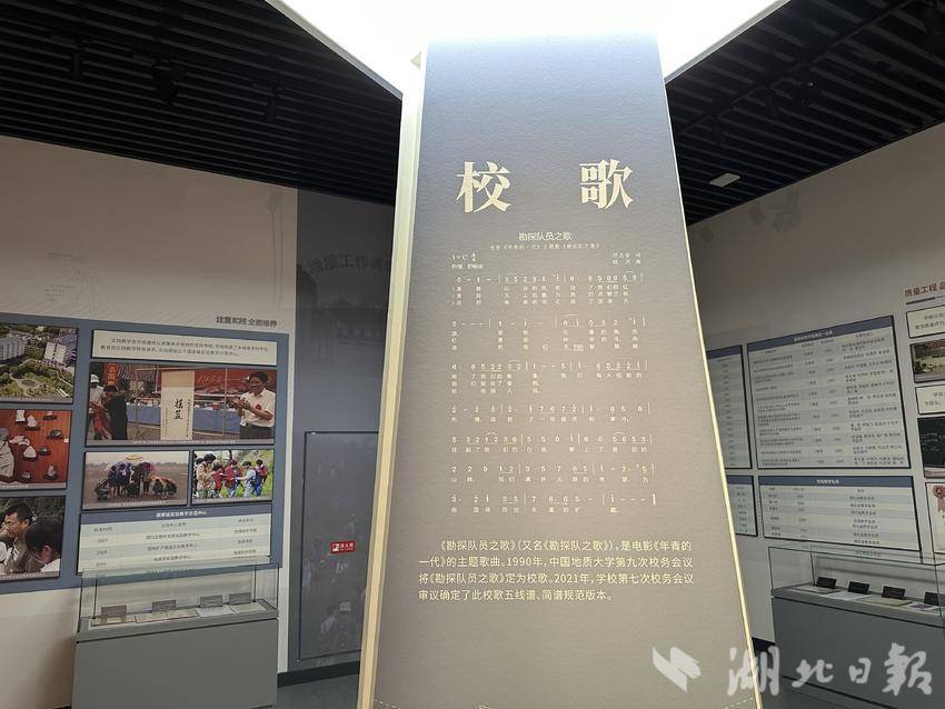地大校史馆中的校歌元素。(湖北日报全媒记者 田佩雯 摄)