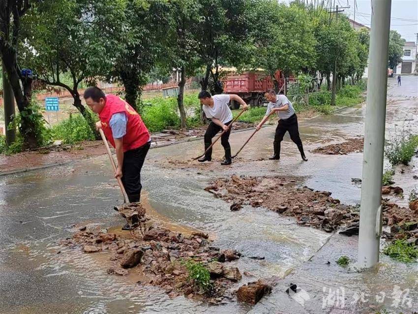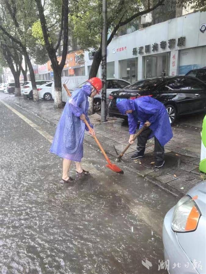 在丹江口城区东风家园、均州路老米厂家属院内、幸福家园等小区,积水深度达0.5米以上,各类漂浮物随着水流堆积在下水道进水口。下沉党员和社区工作人员紧急组织群众转移,同时涉水清理下水道进水口。