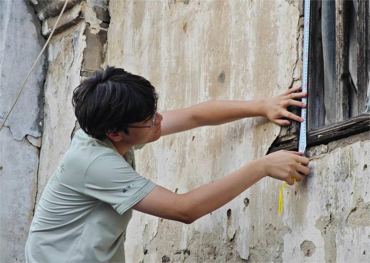 当地古建筑由于年代悠久、重建加盖等原因,用的砖头厚度不一,且有倾斜状屋檐,给测量工作带来了不少挑战。村民们愿意打开家门,让实践队员们入户测量吗?