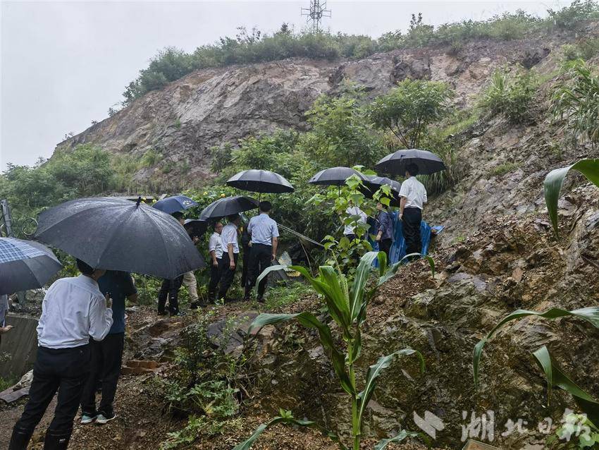 6月29日,省自然资源厅专家领导冒雨在阳新察看地灾隐患点