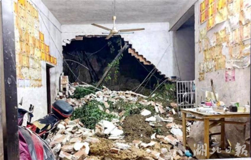 7月1日,通城县普降暴雨,省市连续发布地质灾害风险黄色预警。当晚21时许,通城县五里镇自然资源和规划所所长刘平书和金塘村书记毛明辉巡查排查工作时,发现金塘村七组李友林家屋后山体斜坡存在崩塌变形迹象,立即劝导疏散转移。仅20分钟后,山体发生垮塌,造成部分房屋损毁。