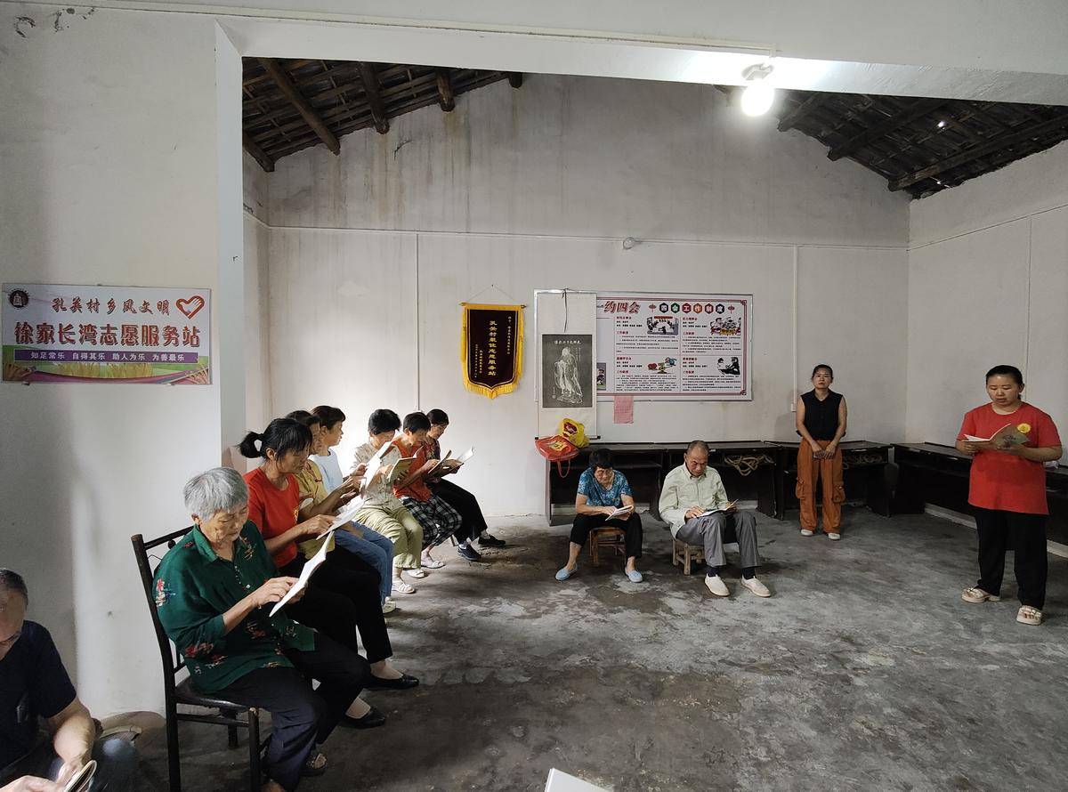 在服务点,志愿者教村民练八段锦、五禽戏等健身操;教村民读经典,观看传统文化讲座,邀请志愿者结合优秀传统文化说身边人、讲身边事。