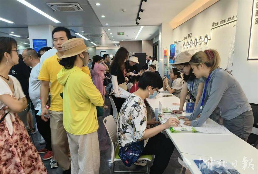 九州通、健民药业、金牛、苏泊尔、恒信汽车……当天,汉阳区“职等你来”夏季招聘专场同步举办,20余家企业现场供岗超2500个,超5000个就业岗位分批线上线下同步发布,人气爆棚。据统计,本次招聘会共吸引2200余名求职者到场应聘,企业收到简历近千份,达成录用意向170余人次。