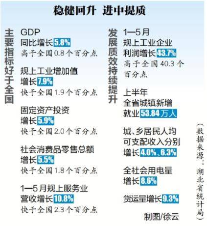 增长5.8%,快于上年同期0.2个百分点,高于全国0.8个百分点——湖北经济交出全国靠前、领跑中部的优异“期中卷”。