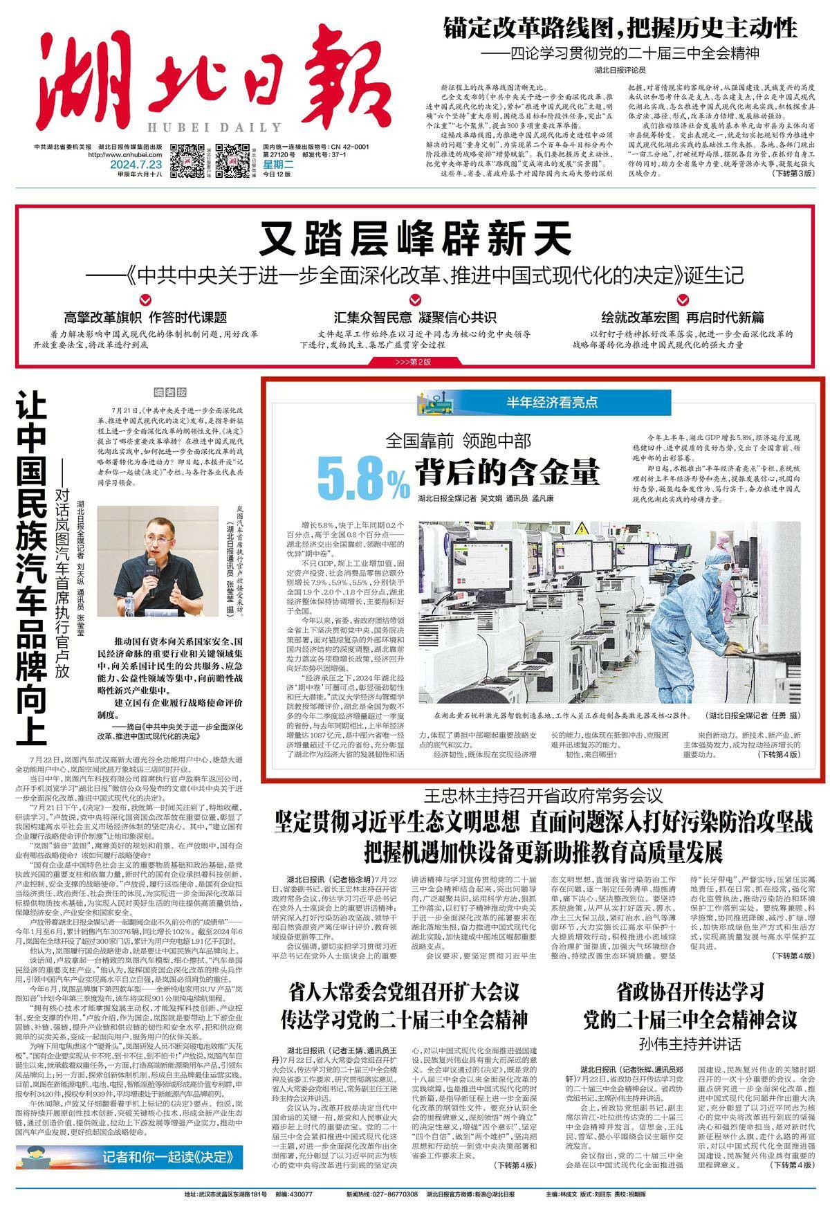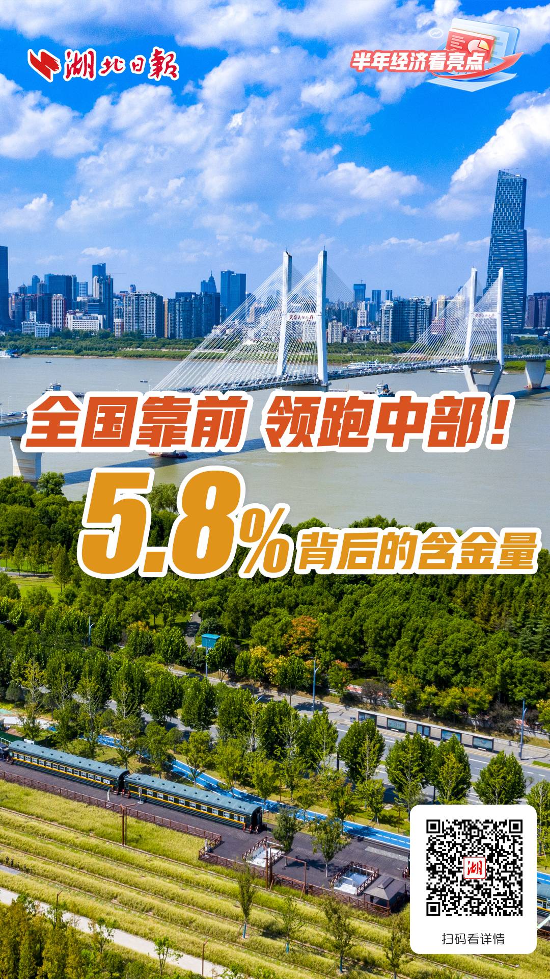今年上半年,湖北GDP增长5.8%,经济运行呈现稳健回升、进中提质的良好态势,交出了全国靠前、领跑中部的出彩答卷。