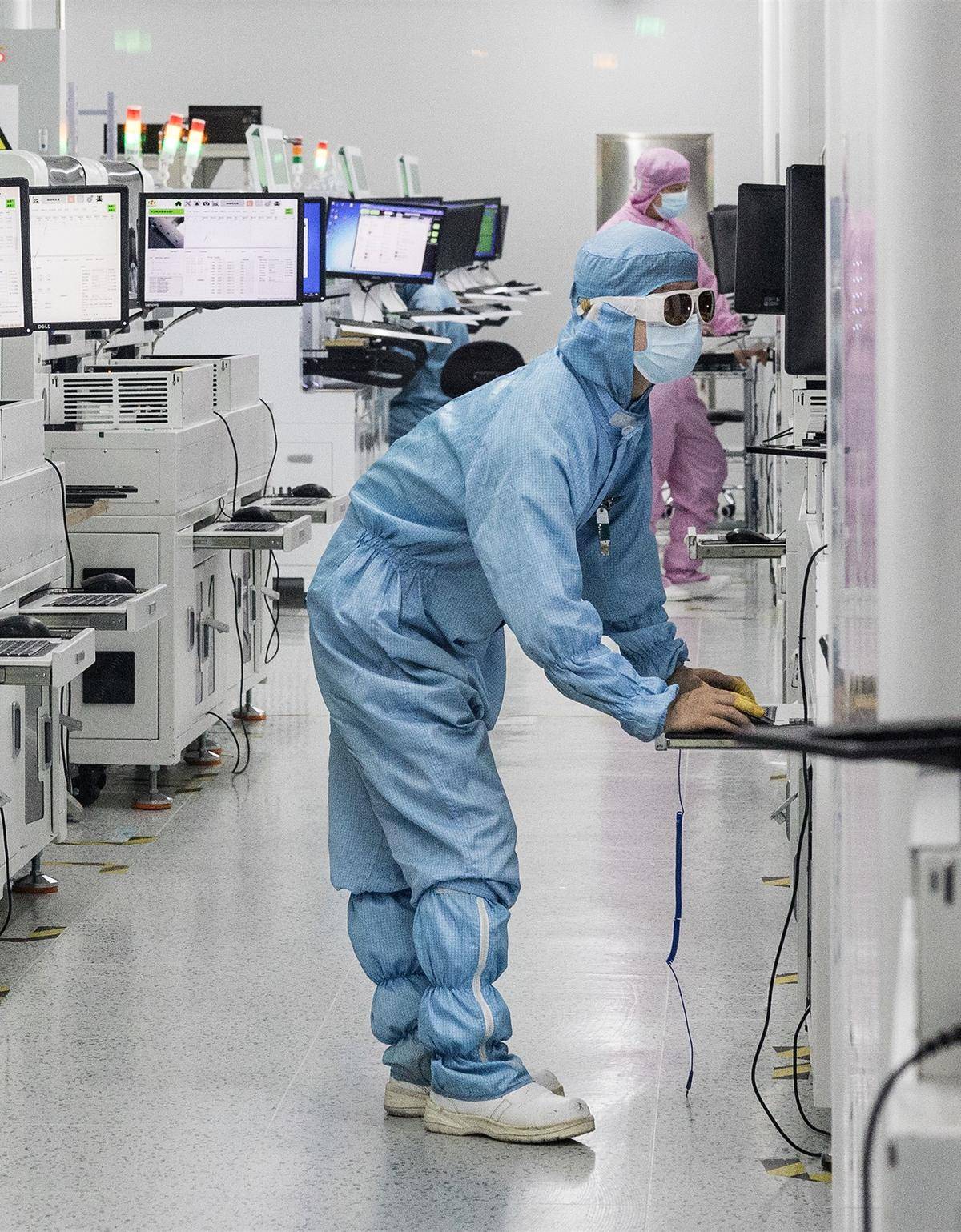 华工高理电子有限公司生产车间,工人正在加紧生产。(视界网 李文勇 摄)