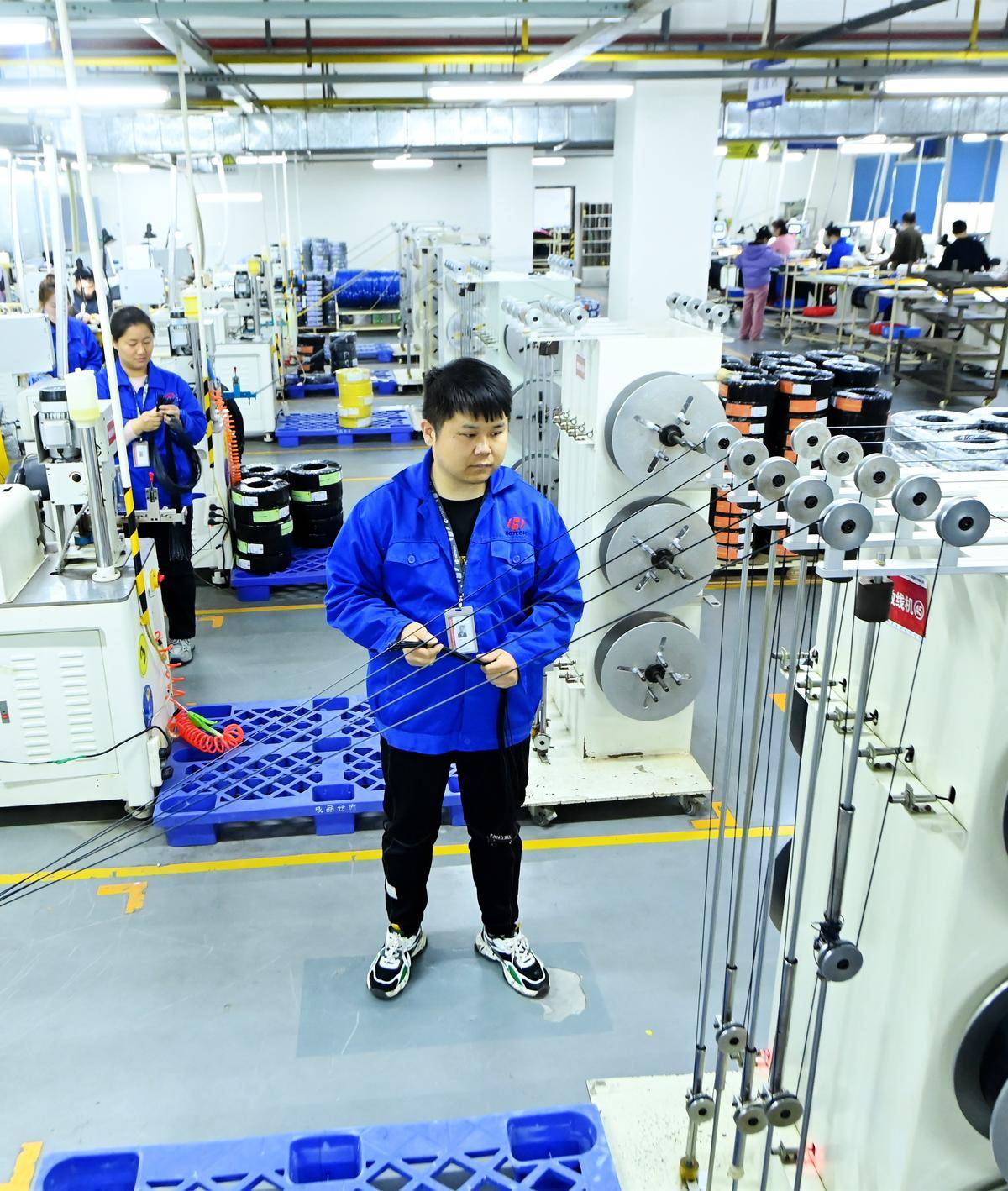 在华工高理新能源汽车热管理系统产业化基地自动化生产车间内,13条生产线马力全开。(湖北日报全媒记者 倪娜 通讯员 杨雨祺 摄)