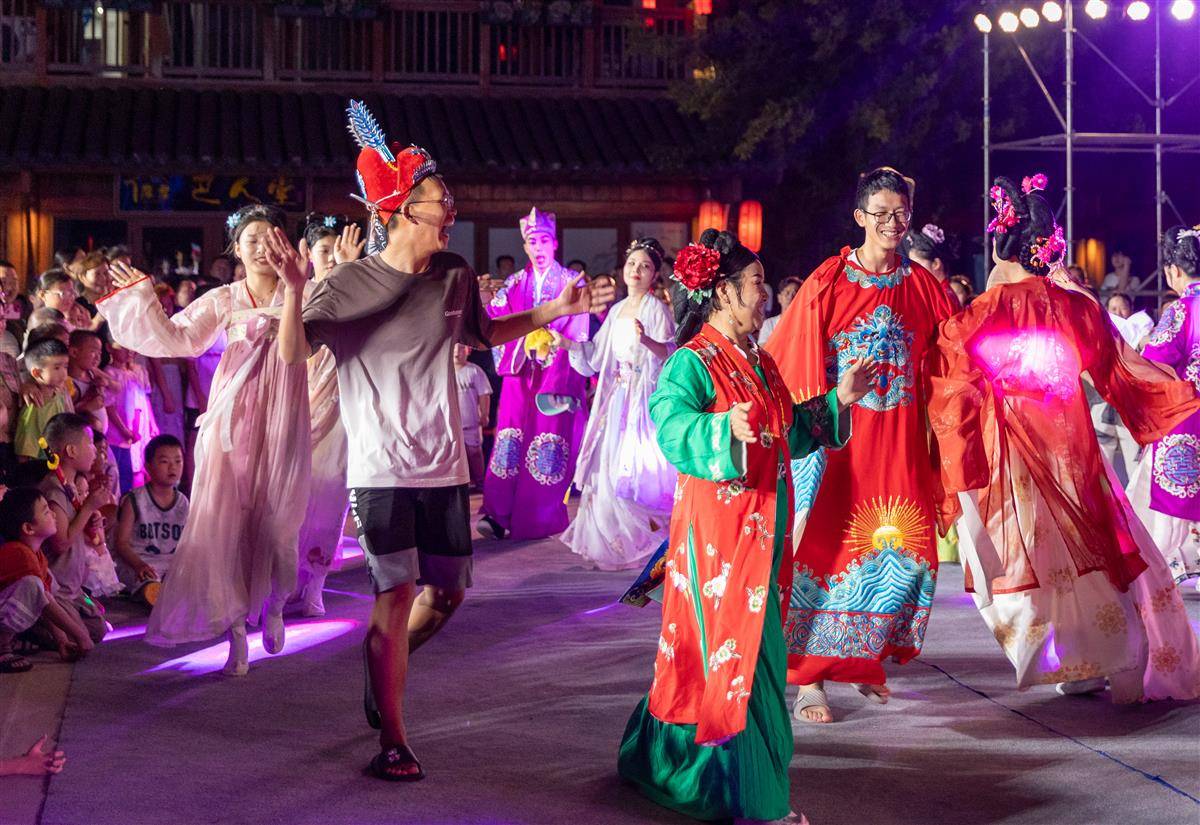 在沔阳小镇,每天40余场演出让游客沉浸式享受文化大餐。日均游玩人次激增20倍,沔阳不夜城的客流量不断突破新高。“与往年相比,今年演艺和消费产品更为集中。全息影像、裸眼3D等光影技术,让科技、艺术和传统文化产生有趣碰撞,游客参与感更强,互动度更高。”湖北文旅仙桃发展有限公司总经理石亮说。