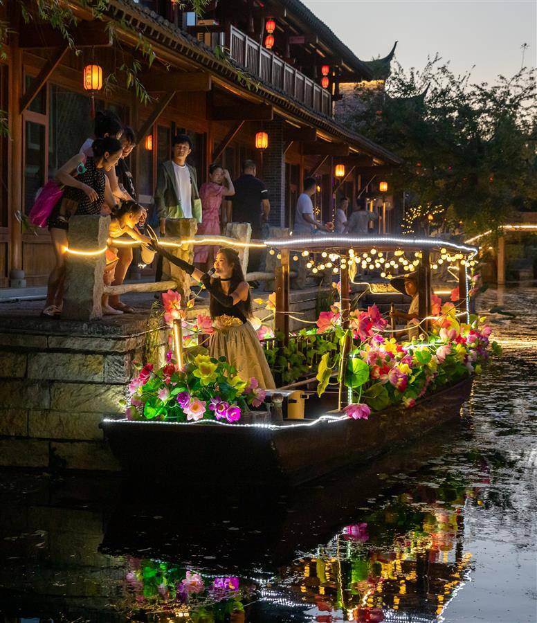 “白天玩项目,晚上看演出,旅游产品更丰富。”在情景剧《王府招亲》中抢得绣球相中“意中人”,潜江游客李俊心潮澎湃。令他意外的是,此次沔阳小镇行,除实景演艺外,游船夜游、杂技表演、烟花秀等同样精彩。