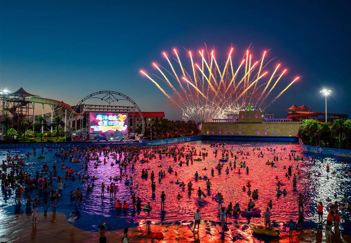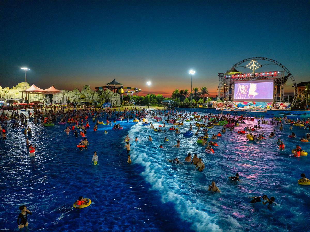 25000平方米的室内场馆,配套破浪滑梯、太极回旋碗、水寨探险、神力方舟等多元项目,为亲子家庭提供更多选择。摇滚派对、飞人表演、水上烟花……入夜之后的狂欢,再掀暑期夜游热潮。