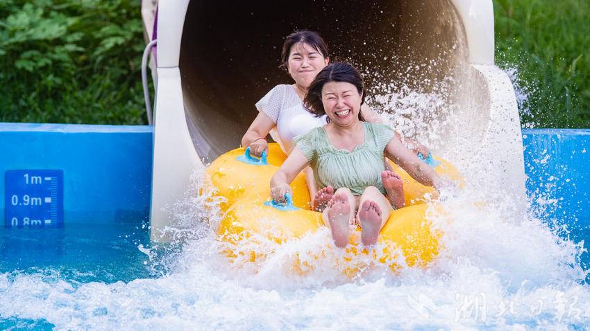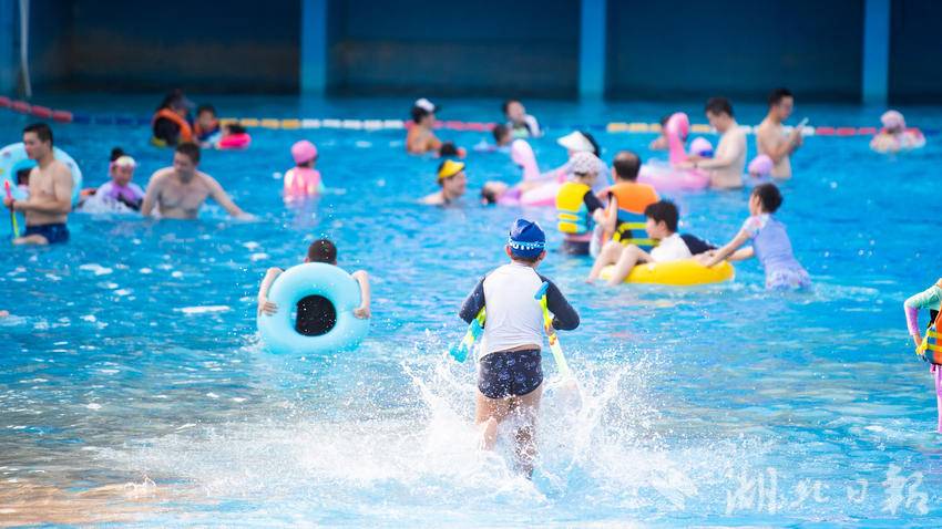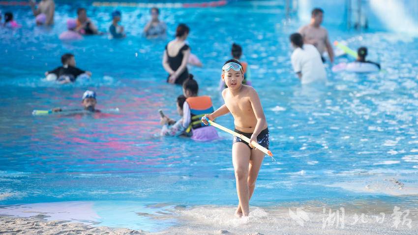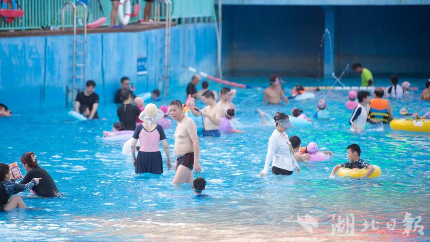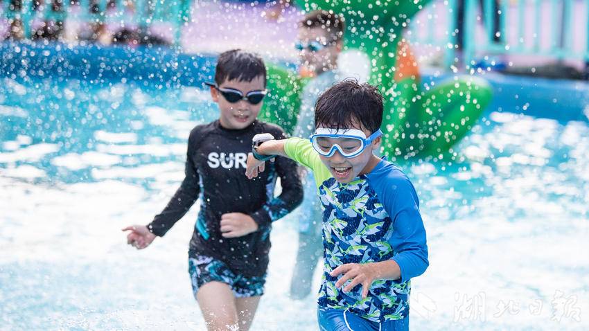 2024年7月24日,武汉气温直逼40℃,在武汉青少年宫水上世界,不少市民游客前来“玩水”避暑,享夏日清凉。据工作人员介绍,随着连日高温,工作日的入园游客已达到2000人左右,周末和节假日入园游客超5000人,沙滩、冲浪、泳池……一场属于武汉人的“玩水”热正在到来。