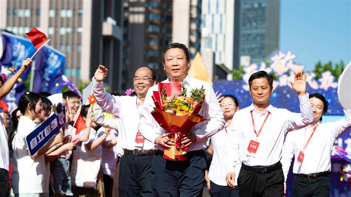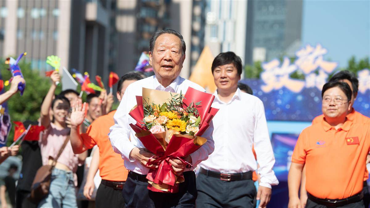 中国工程院院士、华中科技大学教授张勇传及团队走上红毯。