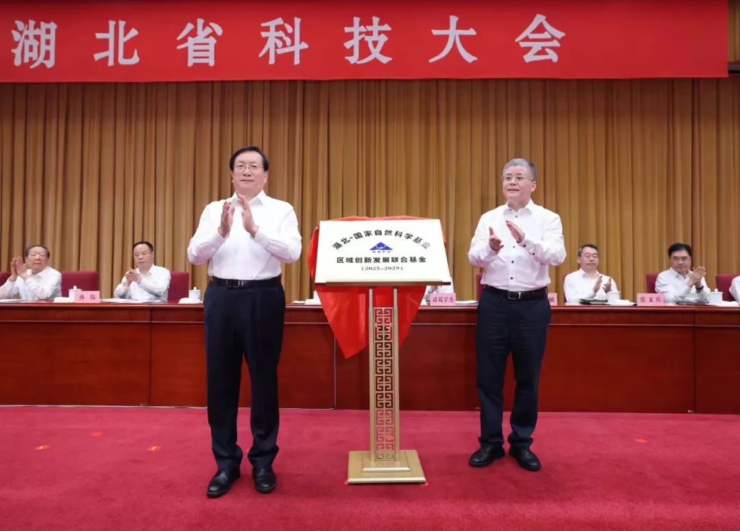 会上宣读了关于2023年度湖北省科学技术奖励的决定。王蒙徽为2023年度湖北省科学技术突出贡献奖获得者张祖勋院士、张勇传院士颁奖,同他们亲切握手、合影,邀请他们在主席台就座。与会领导和院士专家为2023年度湖北省科学技术奖获奖代表颁奖。王忠林与张学敏为“湖北—国家自然科学基金区域创新发展联合基金”揭牌。