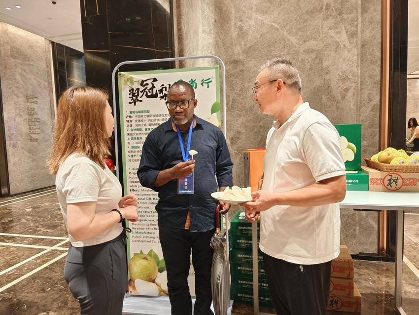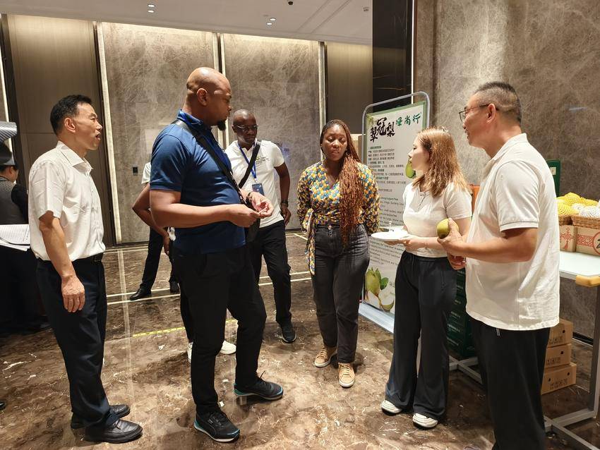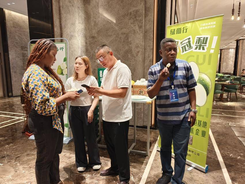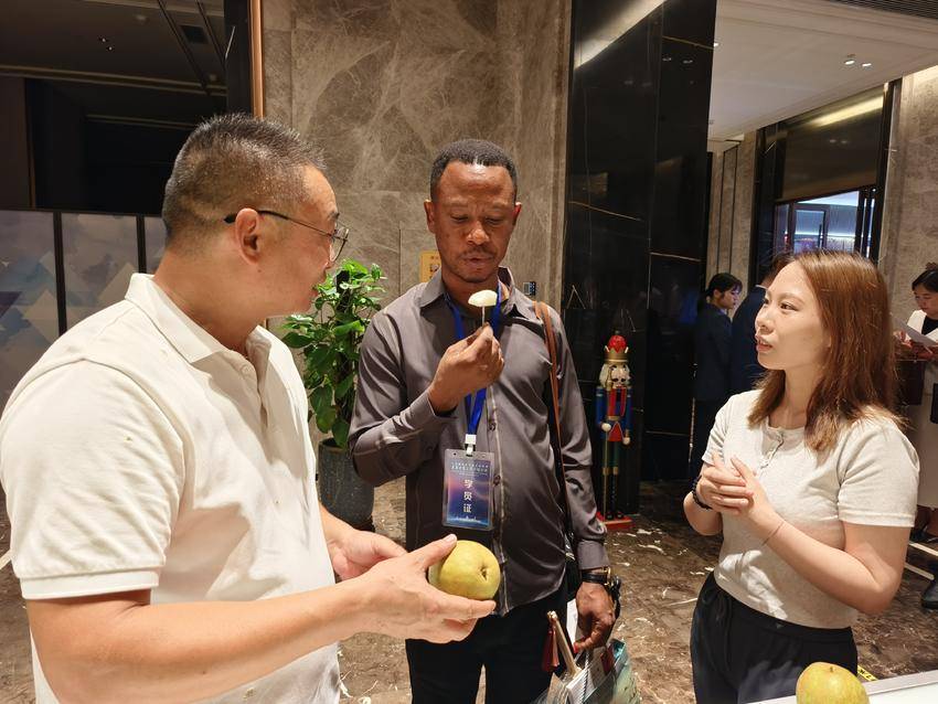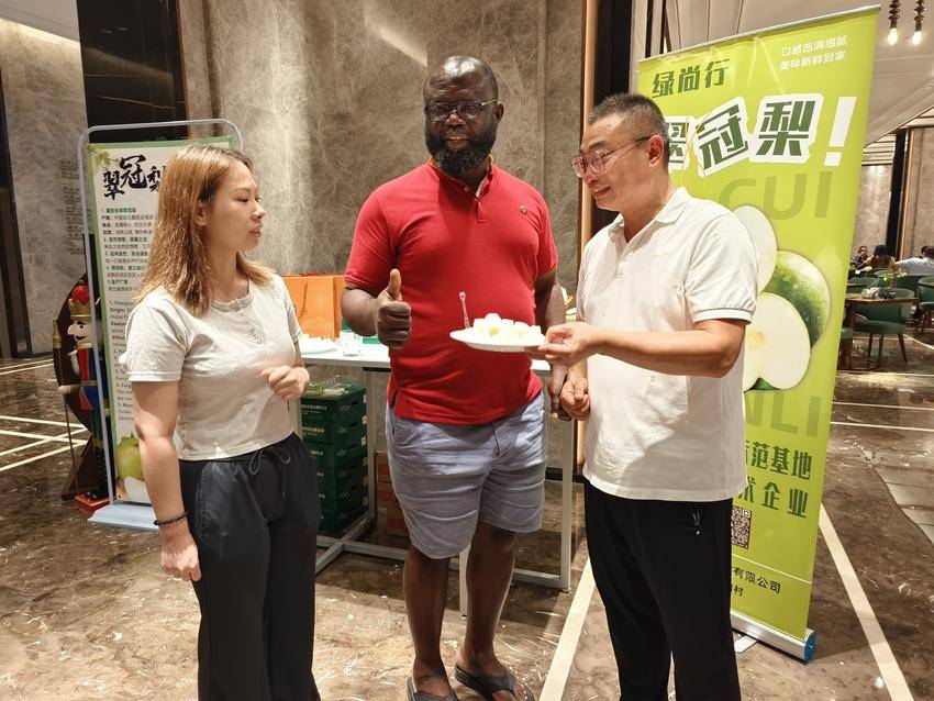 在活动现场,联合国官员和外国专家代表对翠冠梨的味道、口感赞不绝口。有的现场加了微信和联系方式,现场订购,有的在品尝试吃后还意犹未尽,吃自助餐时再过来端一盘与其他人一起分享。