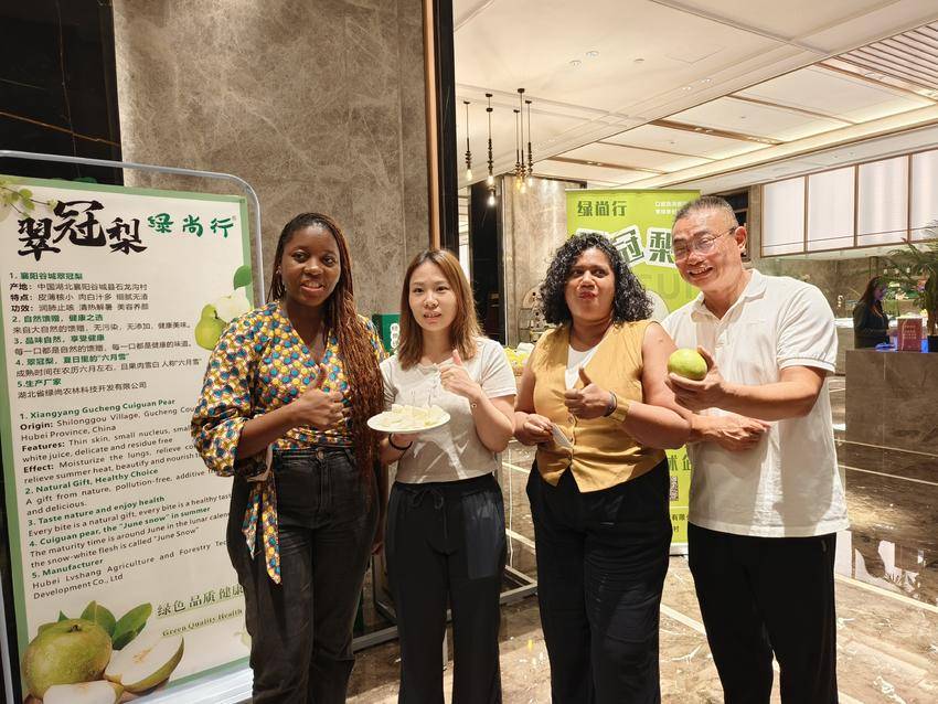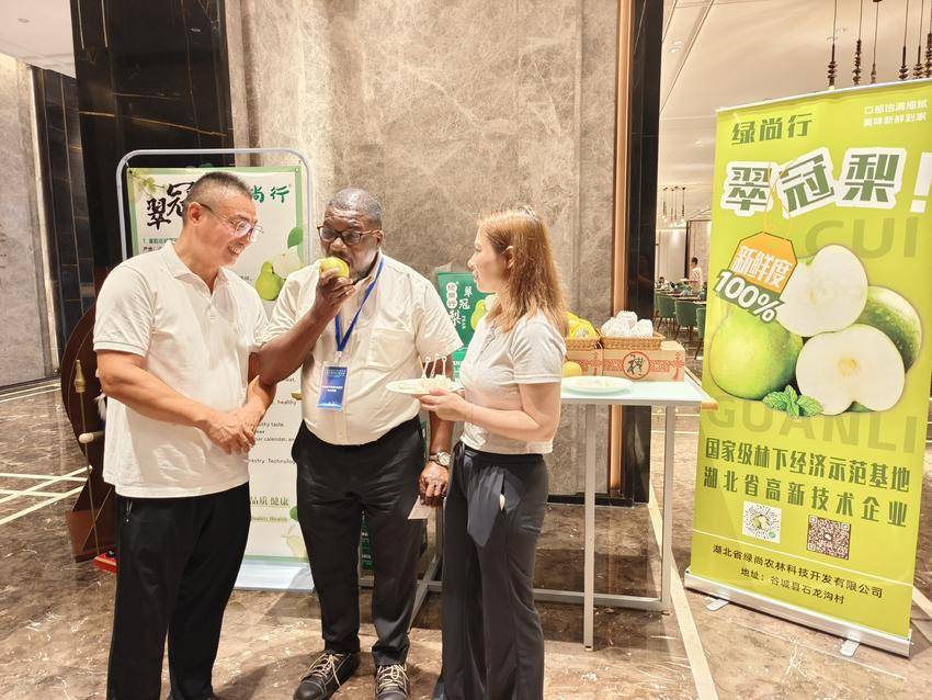 湖北日报客户端讯(通讯员冯善敏)“ Very delicious!”7月29日,在襄阳民发瑞际酒店,联合国官员和外国专家品尝了绿尚翠冠梨后竖起大拇指,连声说好。