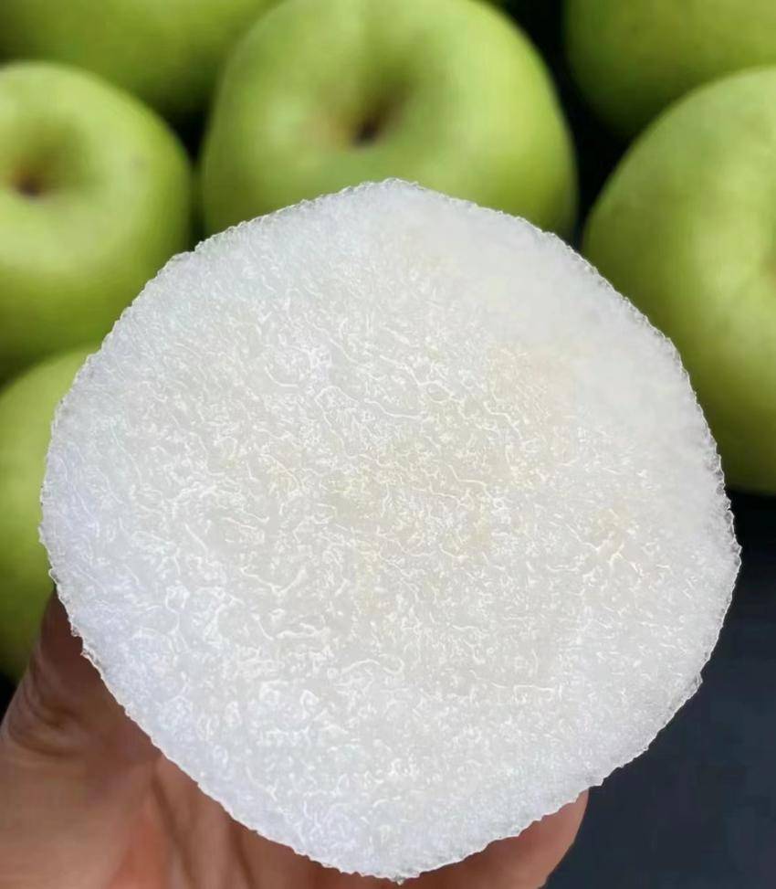 绿尚翠冠梨,皮薄核小、肉白汁多、细腻无渣,具有润肺止咳、清热解暑、美容养颜的功效,健康美味,因成熟时间在农历六月左右,且果肉雪白,人称夏日里的“六月雪”。