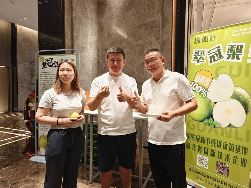 根据襄阳市政府安排,湖北绿尚农林科技开发有限公司的农产品翠冠梨成为在29日民发瑞际酒店午餐时的品尝产品。