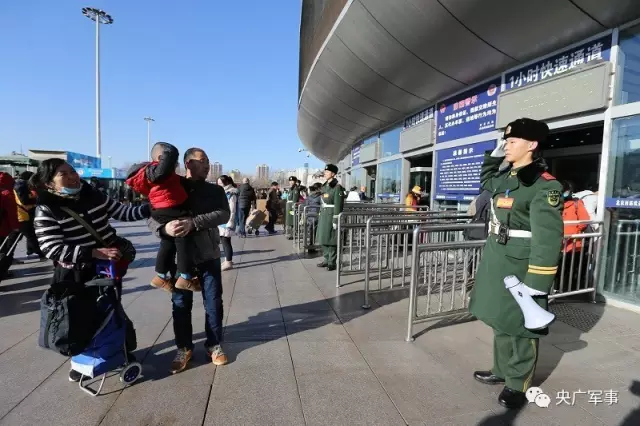 武孟杰在春运期间的北京西站向父母敬礼。